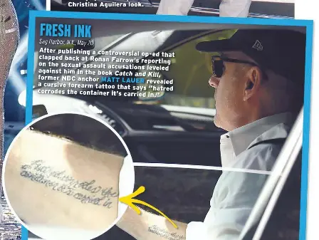 Matt Lauer Debuts Tattoo About Hatred Days After Slamming Ronan Farrow S Reporting In Op Ed People Com